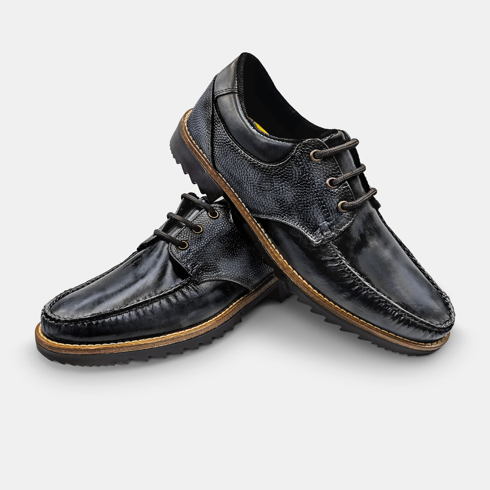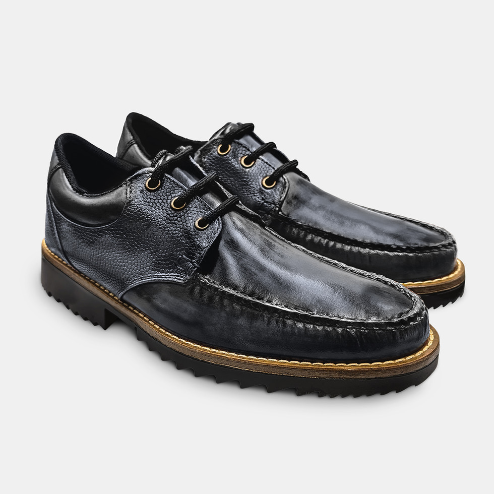 ARTICULO CON PROCESO DE ENTINTADO Y SOMBREADO A MANO, POR LO QUE ESTOS PUEDEN PRESENTAR VARIACIONES EN CUANTO A LA TONALIDAD Y DISPERSION DE LA MISMA EN EL CALZADO GENERANDO PATRONES UNICOSCOLOR NEGRO SOMBRA CORRESPONDE A UNA PIEL CUYA BASE ES EN TONO GRIS OXFORD Y CUENTA CON SOMBREADO NEGRO ARTESANAL, NO DEBE DE CONFUNDIRSE CON NEGRO
