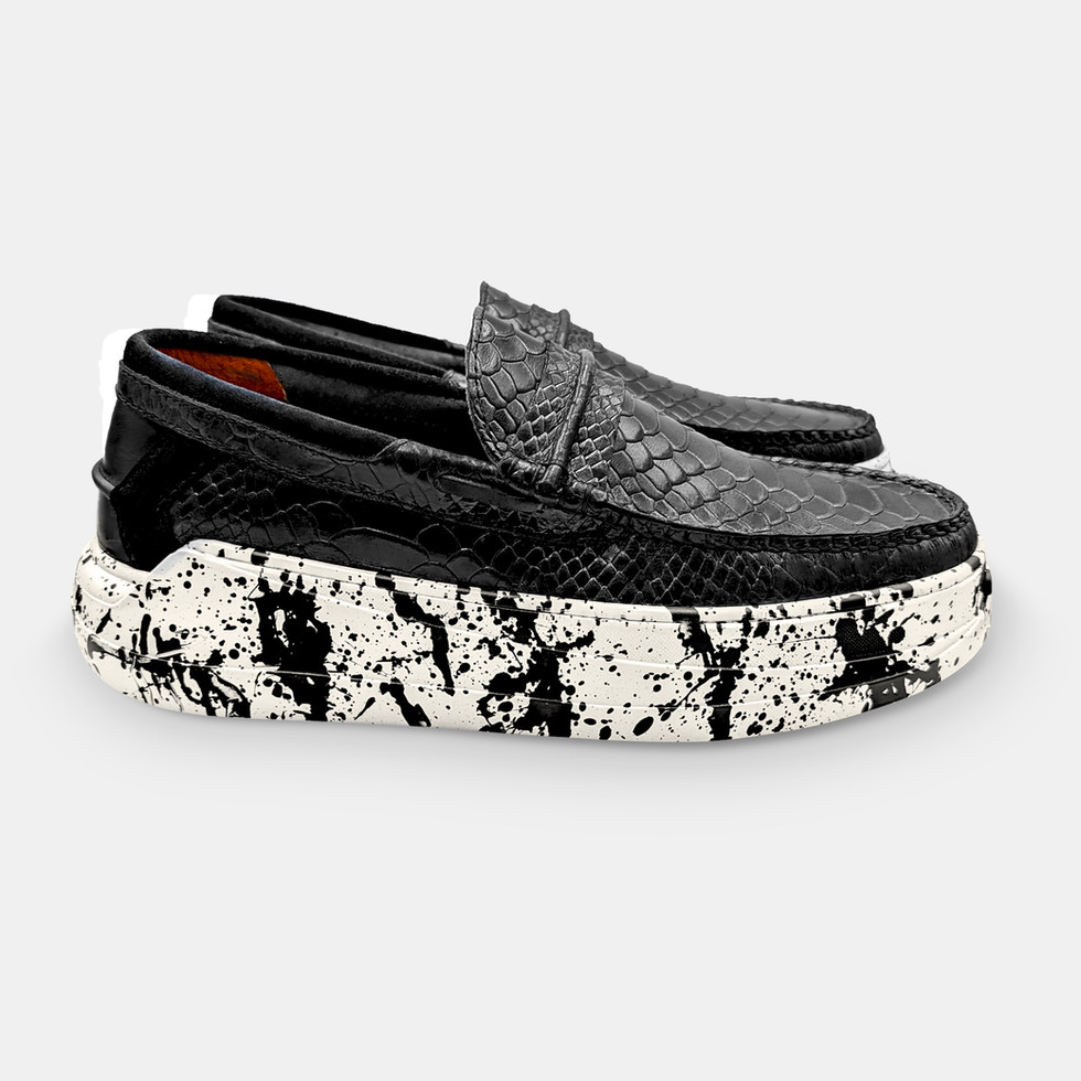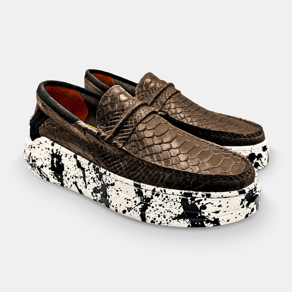 Inspirados en las tendencias más vanguardistas, los Spender redefinen el lujo urbano con un estilo inconfundible y lleno de personalidad. Fabricados con piel vacuna de aspecto Python, cuya textura y detalles realzan su carácter exclusivo. Su suela Oversized pintada con detalles exclusivos a mano y con tecnología de absorción de impacto Polylight garantiza comodidad absoluta y una pisada segura en cualquier ocasión . Desde reuniones de alto nivel hasta eventos exclusivos, los Spender son la elección perfecta para quienes buscan destacar con sofisticación y confianza. Lleva tu estilo al siguiente nivel con la fusión ideal de lujo y modernidad.