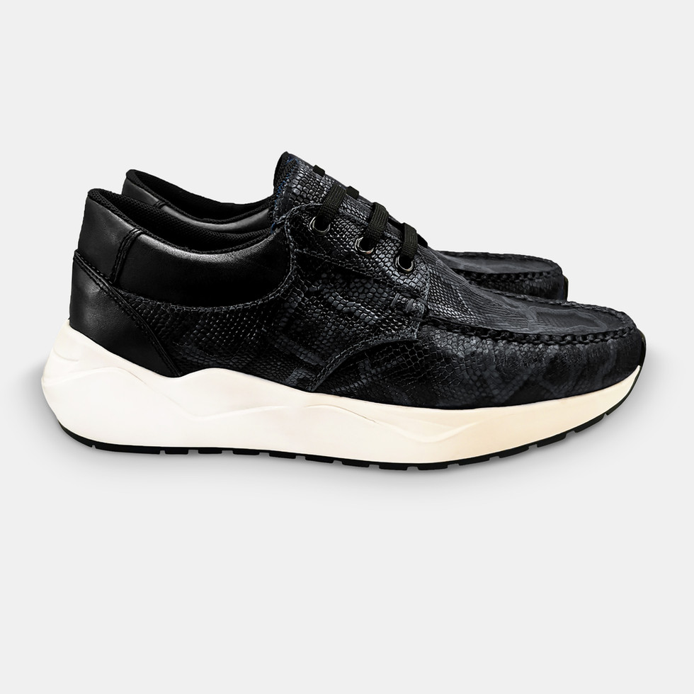 Masterizamos la excelencia en diseño contemporaneo. Fabricados en piel vacuna con acabado bitono sombra y grabado cobra; esto aunado a su novedosa suela de estilo "Oversized" en material TR con tecnologia de absorcion de impacto, los hacen perfectos para aquellos que les gusta disfrutar de la vida con estilo sin perder el confort.